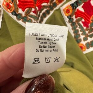 Elevate your casual wardrobe with this olive green dyed short sleeve tee with boho vibrant embroidery. Perfect for everyday comfort and style. Purchased at Free People. Great condition. Color is two toned. Cotton material. True to size. Not a relaxed fit. Could fit a large if want relaxed.