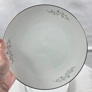 FOUR Noritake Tilford Dinner Plates White with Blue Flowers & Green Leaves