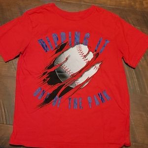 The Children's Place. Shirt #1 is Navy and long sleeve. Shirt #2 is Blue has some wear. Shirt #3 is Red. Shirt #4 is Green. All in great shape! All size M 7/8