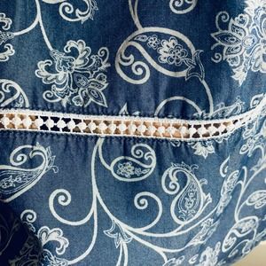 BLUE/WHITE BELL SLEEVE BLOUSE WOMEN'S SIZE LARGE