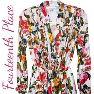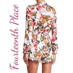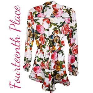FOURTEENTH PLACE (Saks) Romantic Roses Floral Ruffle Romper, Size XS