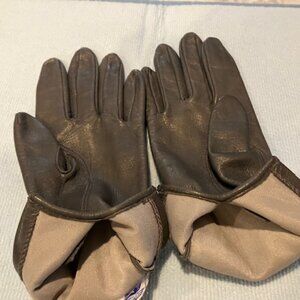 Gray leather gloves in excellent condition-like new. Nylon lining.