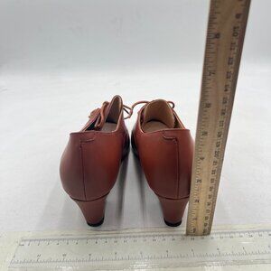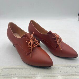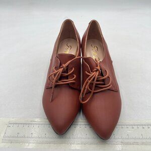 FOWT Brown Comfort Lace-Up Loafer Pointed Toe Block Low Heel Tie Up Slip-on Pump