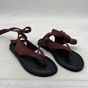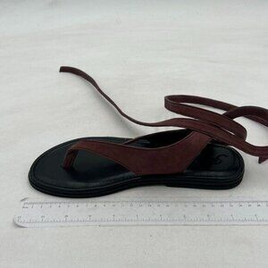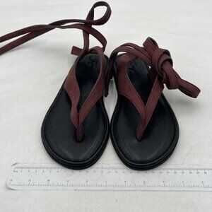 FOWT Brown Women Split Round Toe Sandals Lace up Strappy Comfortable Flats Casual Summer Soft Flip Flop Shoes