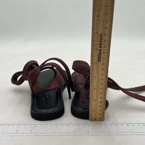 FOWT Brown Women Split Round Toe Sandals Lace up Strappy Comfortable Flats