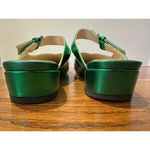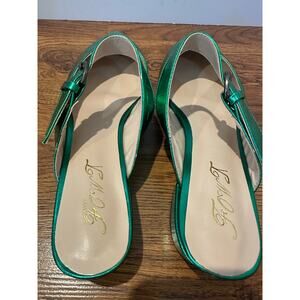 Make a statement with these stunning FOWT emerald, green mules! These pointed-toe heels feature a unique crock-textured finish that adds a touch of sophistication to any outfit. Perfect for a night out or to elevate your everyday look. These are new with tags, size 13. Don't miss out on adding these beauties to your wardrobe! #FOWT #Mules #EmeraldGreen #PointedToe #WomensShoes #Size13 #Heels #FashionFootwear #NewWithTags