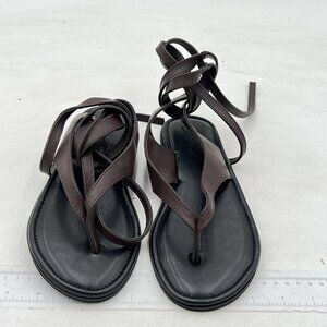 FOWT Dark Brown Split Round Toe Sandals Lace up Soft Flip Flop Comfortable Flats