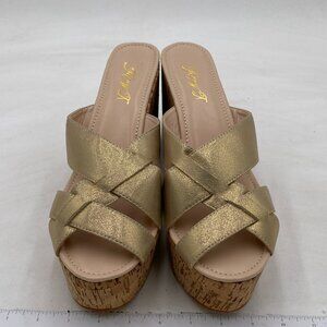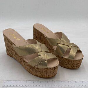 FOWT Gold Cork Wedge Sandals Cross Strappy High Platform Open Toe Slippers Shoe