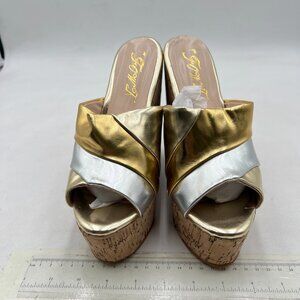 FOWT Gold High Wedges Heel Slide Sandals Open Toe Platform Slippers Mules