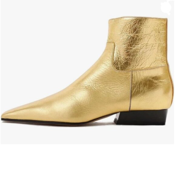FOWT Gold Square Toe Side Zipper Ankle Boot Block Low Heel Short Boots Warm Fall Winter Daily Outdoor Dress Booties