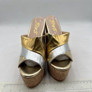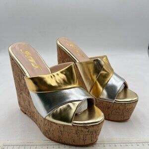 FOWT Gold/Silver High Wedges Heel Slide Sandal Open Toe Platform Slippers Daily
