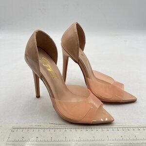 FOWT Nude Bi-Material Slip on D'Orsay Heeled Sandals Pointed Toe Two Tone Shoes