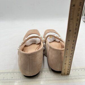 FOWT Nude Square Toe Slip on Flats Pearl Studded Strap Pumps Wedding Shoes