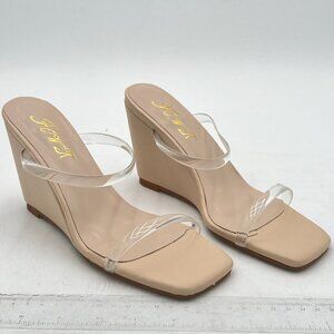 FOWT Open Toe Platform Mules Slip on Wedge High Heel Slippers Double Strap Casu