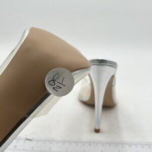 FOWT Silver Clear Mule Pointed Open Toe Slippers with Sexy High Heel Sandals