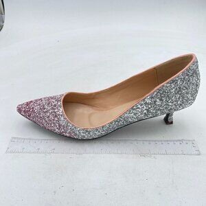 FOWT Silver With Pink Toe Glitter Pumps Pointed Toe Low Heels Slip On Shoes
