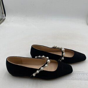 FOWT Women Square Toe Slip on Flats Pearl Studded Strap Elegant Pumps Black