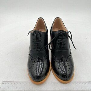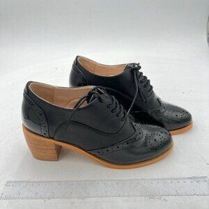 FOWT Women's Perforated Lace-Up Oxfords Almond Toe Mid Chunky Heel Brogues Casua