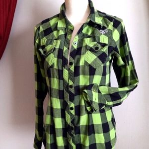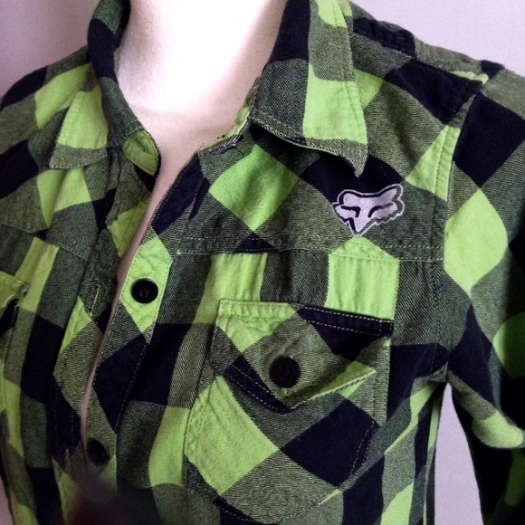 WOMENS FOX NEON N BLACK PLAID SZ MEDIUM NEW CONDITION NO HOLES OR STAINS