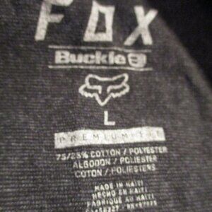 FOX Head Men Large Gray Red Blue Graphic Motocross Racing Short Sleeve Shirt