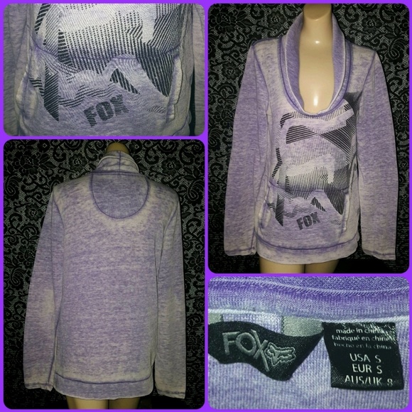 if you LOVE 2 collect & wear FOX designs, then THIS BABY was MADE 4 YOU!..its SOO COOL.IN PERSON and is MEGA SUPER DUPER SOFT with the coolest VINTAGE BURNOUT WASH in a LAVENDER PURPLE, WHITE, & CHARCOAL BLACK combo...a UNIQUE deep plunge neckline & front pocket pouch...its a LADIES SIZE-SMALL(will also fit a LARGE JR/MISS)..its in AWESOME pre-owned condition!..SOOO COMFY COMFY COOL I PROMISE YOU!