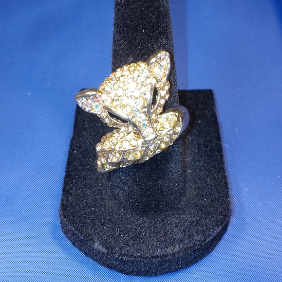 Beautiful Fox ring encrusted with gold and rhinestone. Size 7.