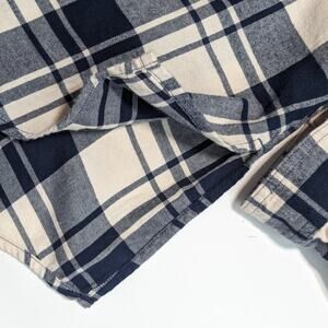 100% cotton yarn dye brushed twill flannel, classic button down closure, collared neckline, Fox label on pocket.
