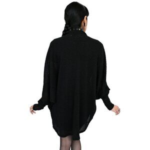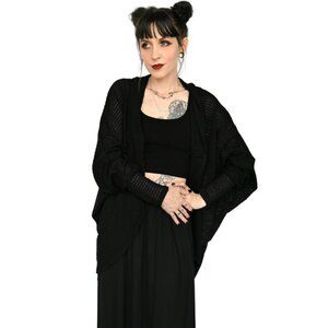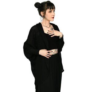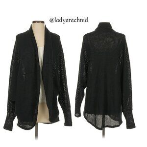 Oversized bishop sleeve open front cardigan, lightweight and cozy. Made out of a soft medium weight waffle textured fabric. A poly blend. Part of the FOXBLOOD Signature Collection and made in Los Angeles. Tagged a size 1, per the website this would best fit XS through L. The batwing construction will accommodate a wide range of bust sizes, there's not really a "pit to pit" measurement but I did measure about 20" across the waist/hip area. Let me know if you need any other information. Smoke free home but we do have pets. BIN19