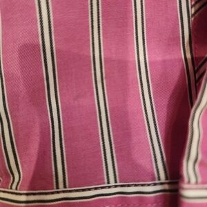 Foxcroft Button Front Pink White Blue Striped Collard Shirt Wrinkle Resistant Size 8. Cotton Polyester blend.