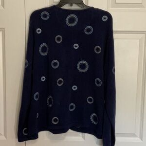Foxcroft Full Zip Front Embroidered Cardigan. Size XL. Color Navy, light blue & gold. Great pre-owned condition.