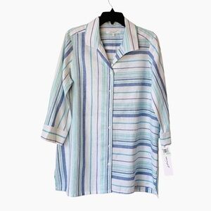 FOXCROFT Linen Viscose Longline Blouse Size 8 NEW