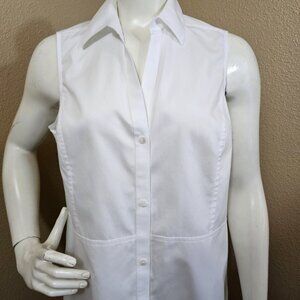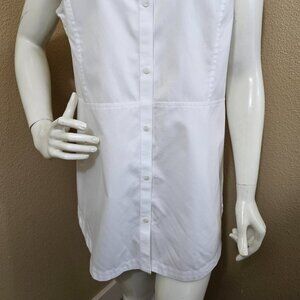 FOXCROFT NYC Heritage Non-Iron White Cotton Sleeveless Button Up Tunic Top~10