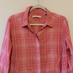 FOXCROFT NYC Womens Plus Size 14 Pink Multicolor Plaid Button Up Shirt