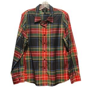 FOXCROFT Non-Iron 16P Button Down Shirt Shaped Fit Plaid Red Black Green