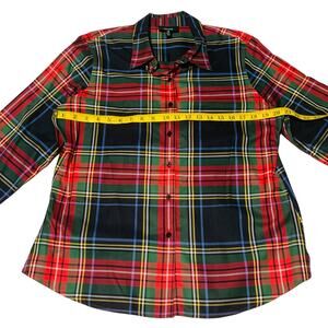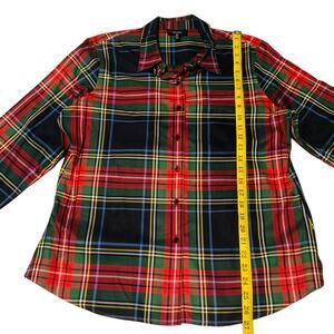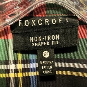 FOXCROFT Non-Iron size 16P Button Down Shirt. Shaped Fi.t Plaid of Red, Black, & Green. Good pre-owned condition.