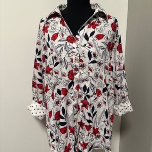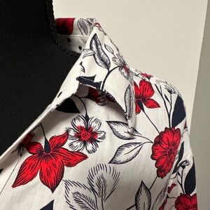 *FOXCROFT* Plus White x Red Floral Wrinkle-Free Button Down Shirt Size 20W