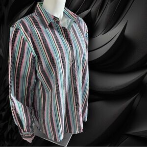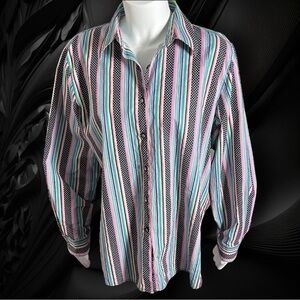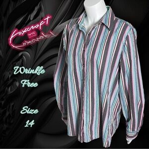 FOXCROFT Size 14 Wrinkle Free Classic Fit Bright Stripe Long Sleeve Shirt