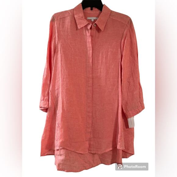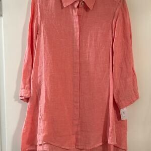 FOXCROFT Tunic Button Up Blouse 100% Linen Top Coral 3/4 Sleeves Size 8 NWT