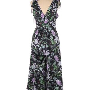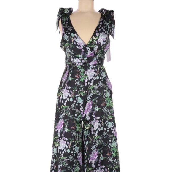 FOXIEDOX BLACK SLEEVELESS V-NECK FLORAL TINLEY JUMPSUIT NEW WITH TAGS, LENGTH 48”, POLYESTER 100%, NEW WITH TAGS