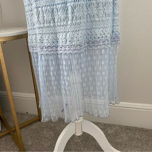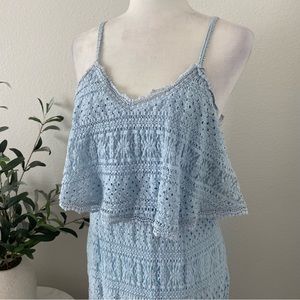 Women’s FOXIEDOX brand size large Ellie lace midi dress in light blue color.