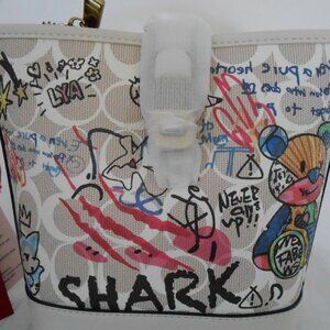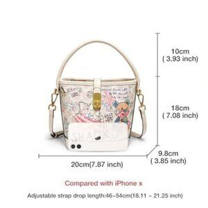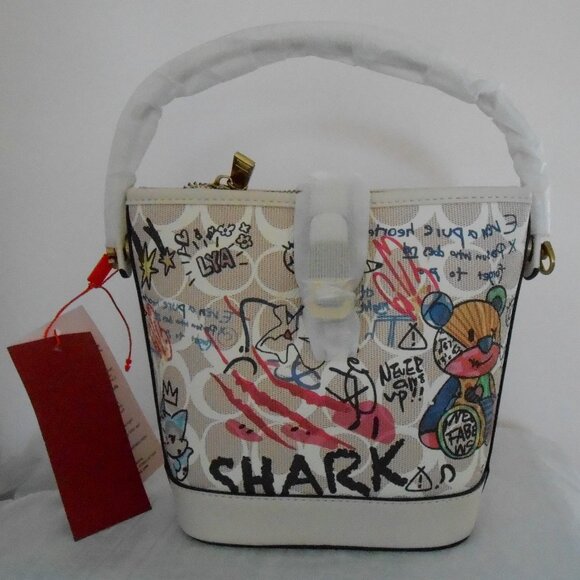 FOXLOVER Coated Canvas Small Bucket Crossbody/Shoulder Bag Purse Graffiti-NWT