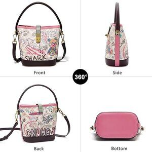 FOXLOVER Faux Leather/Fabric Bucket Small Crossbody Bag with Graffiti - NEW