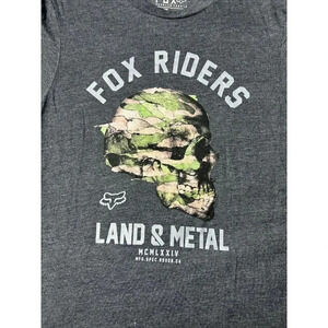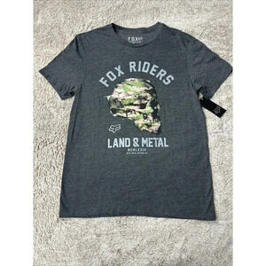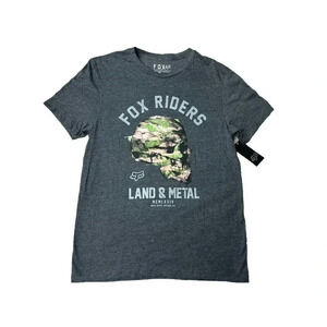FOX Riders Men’s T-shirt Size S Logo Skull Camo Graphic Land & Metal Gray New