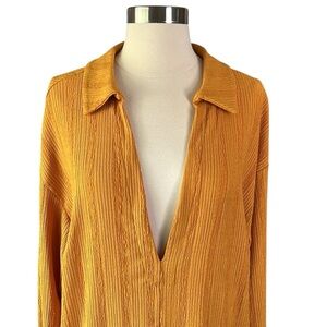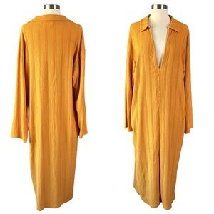 FP BEACH Textured Midi Tee Shirt Dress in Marigold Size Large