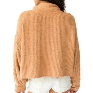 Free People Be Yours Camel Soft Chunky Open Knit Cowl Neck Long Dolman Statement Sleeve Slouchy Relaxed Boxy Cozy Cropped Pullover Sweater