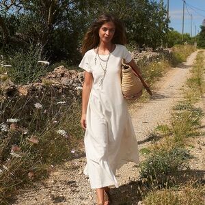 Sweet and shapeless midi dress from our free-est collection featured in an oversized, t-shirt style silhouette with ruffled bottom hem for added shape