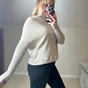 Lightweight sweater/long sleeve tee. Unique neckline, interesting hems and direction of ribs. Perfect condition.