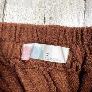 Keywords: FP Beach, women's sweat, brown sweat, terry cloth, XS size, casual wear, side pockets, elastic closure, relaxed fit, comfortable sweat, soft fabric, pre-owned clothing, women's casual, brown terry cloth, FP Beach sweat.