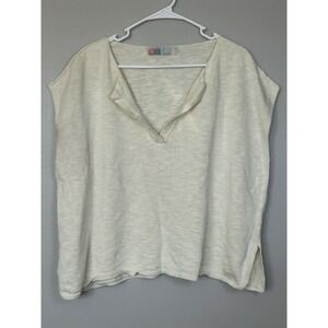 FP Beach Marina Del Sol Sweater Top Cream small oversized boho Beach Preppy Knit