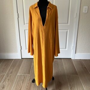 FREE PEOPLE FP BEACH PALMA RIBBED MIDI TEE SHIRT DRESS MARIGOLD SIZE Large So cool and slouchy dress from our FP Beach collection featured in a ribbed knit fabrication V-neckline in a shapeless silhouette. Dropped raglan sleeves Midi-length silhouette Deep V-neckline Collar feature FP Beach Effortless seaside designs for a laidback, throw-on-and-go approach to dressing.